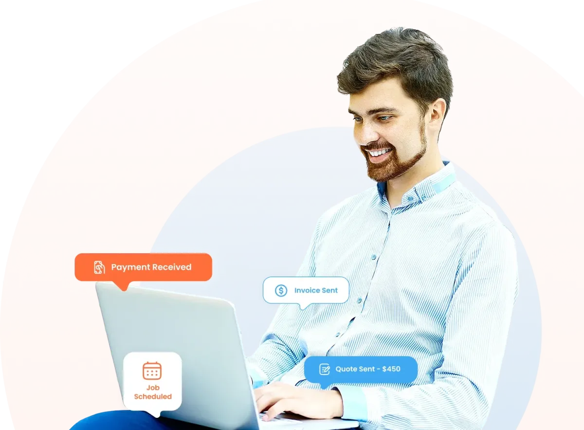 Convert jobs to invoices with one click. Accept payments online via credit card or ACH, track partial payments, and sync everything with QuickBooks. Automated reminders do the follow-up for you.